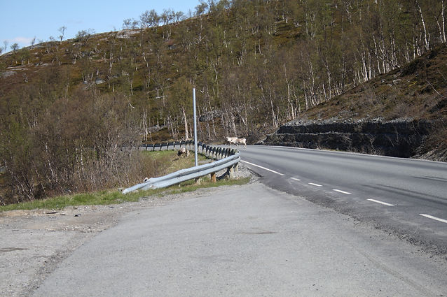 Ensuite il y a un plateau désertique à 300 m d'altitude environ, la route est droite, ça souffle et y a des rennes de tous les côtés, je sais jamais s'ils vont traverser ou pas...